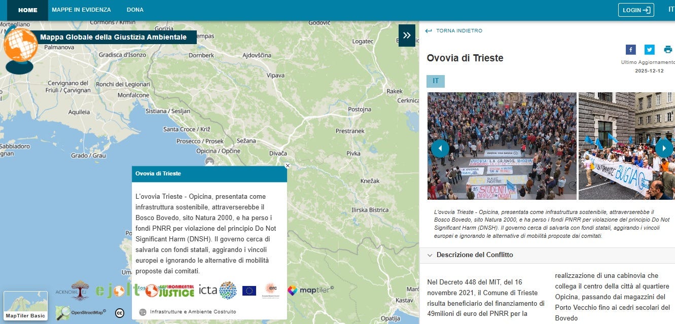 È un progetto insensato che sta divorando risorse pubbliche, è un ecovandalo di stato, l’ovovia di Trieste.